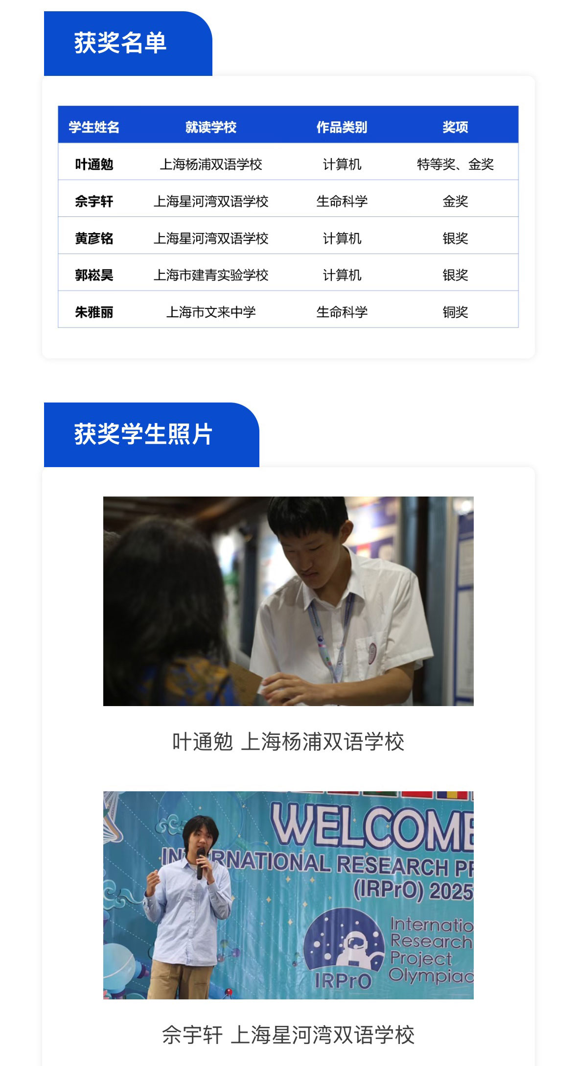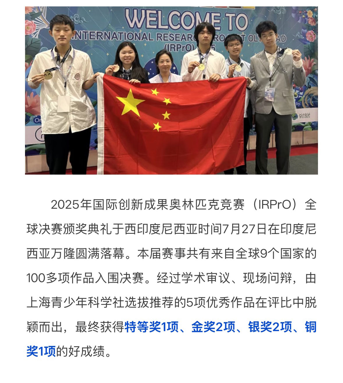 【捷报】2025年国际创新成果奥林匹克竞赛(IRPrO)上海代表队喜获佳绩