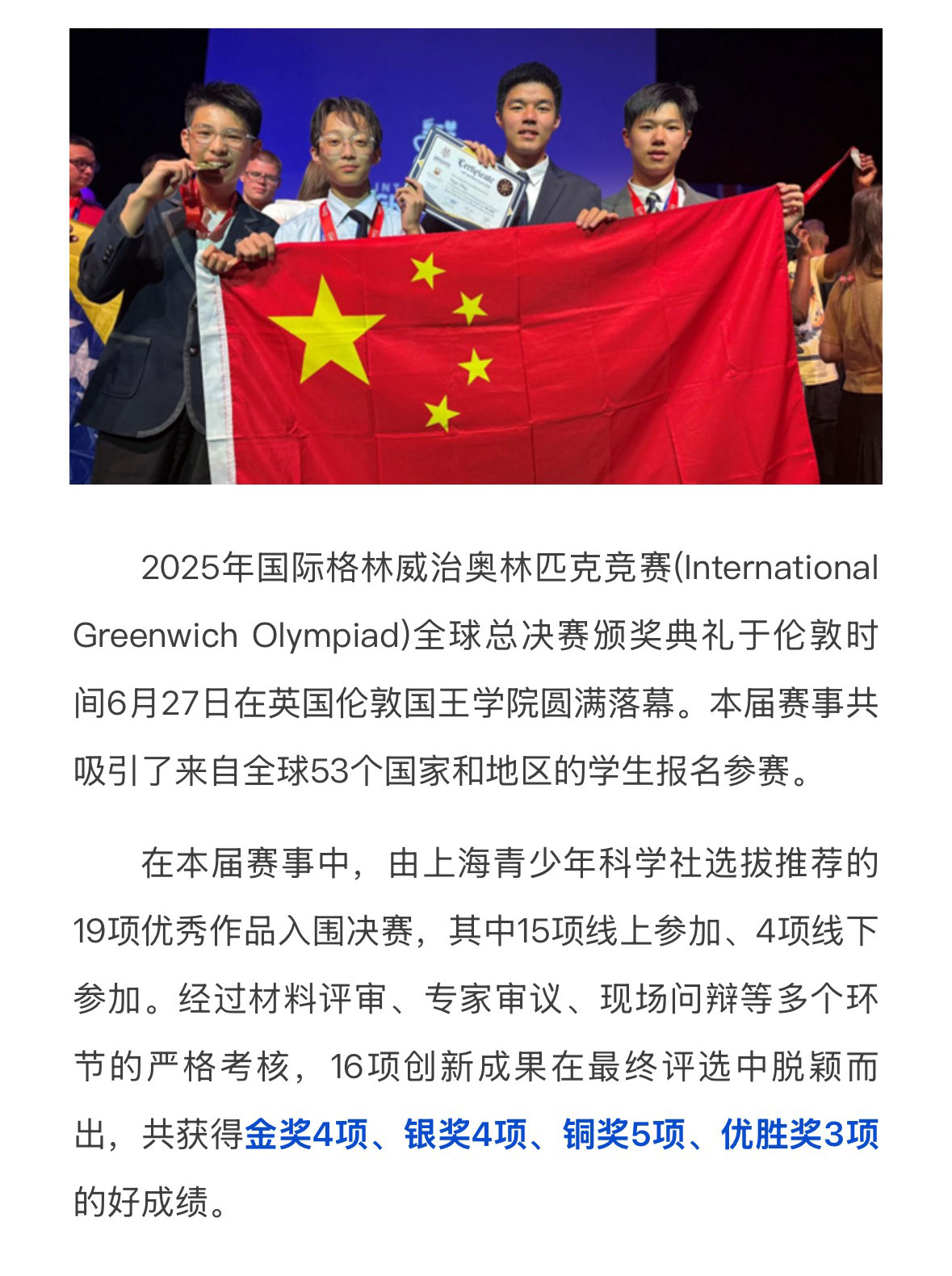 【捷报】2025年国际格林威治奥林匹克竞赛(IGO)上海代表队喜获佳绩